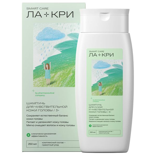 Шампунь для сухой и чувствительной кожи головы ЛА-КРИ разработан на основе гипоаллергенных моющих и натуральных растительных компонентов, мягко очищает волосы и кожу головы, нормализуя естественный водно-липидный баланс.