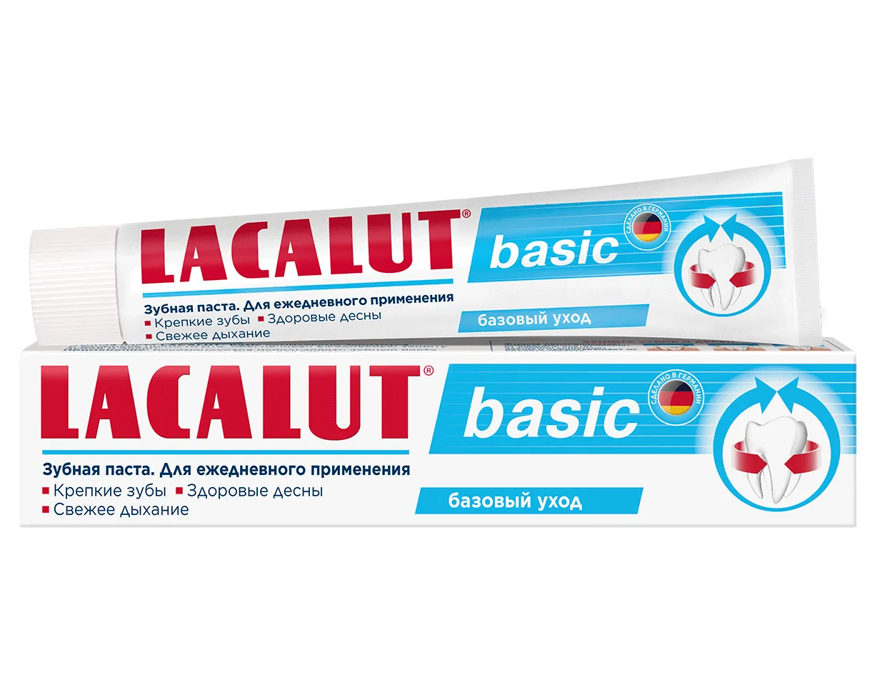 Зубная паста Lacalut basic с традиционным мятным вкусом поможет ежедневно профилактировать кариес с помощью фторида. Лактат алюминия укрепляет десны, а невысокая абразивность пасты идеально подойдет людям с повышенной чувствительностью зубов.