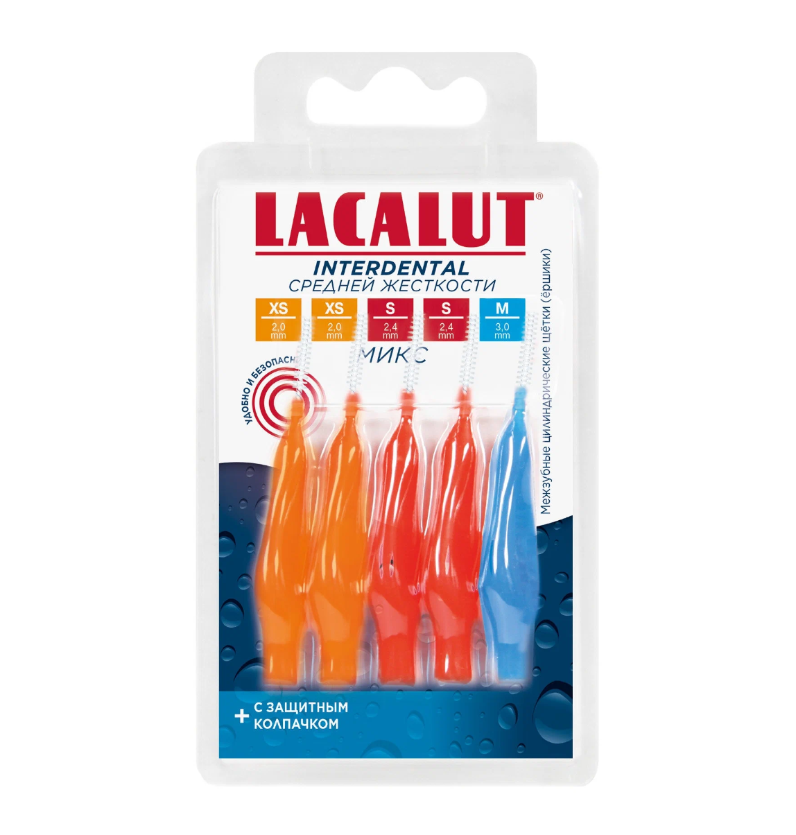 Использование интердентальных щеток Lacalut Interdental позволяет удалить зубной налет и остатки пищи из межзубных промежутков и с контактных поверхностей зубов, осуществляют массаж десен. Используются для чистки зубных брекетов и протезов.