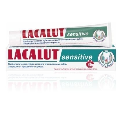 Зубная паста LACALUT sensitive для чувствительных зубов. Активно снижает чувствительность зубов благодаря комбинации аминофторида и фторида натрия, которые создают защитный слой на поверхности зубов и ускоряют восстановление поврежденной эмали. Хлоргексидин включен в состав пасты для предотвращения роста патогенной микрофлоры и развития кариеса (в т.ч. пришеечного кариеса), т.к. чрезмерный рост бактерий утяжеляет течение процесса, на фоне повышенной чувствительности зубов. Лактат алюминия включен в рецептуру для укрепления десен и профилактики их воспаления. Зубная паста одобрена Стоматологической ассоциацией России (СтАР).
