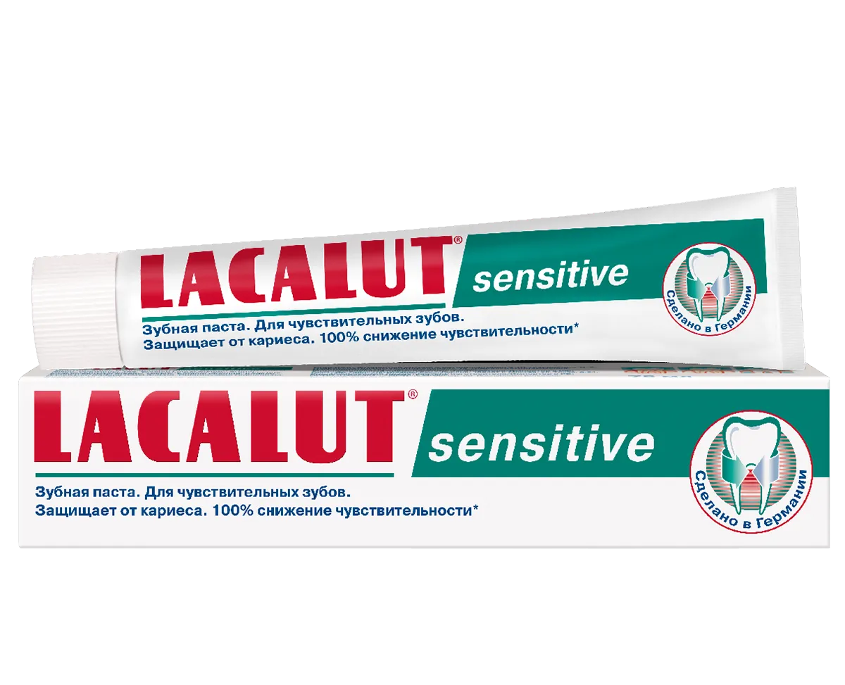 Зубная паста Lacalut sensitive содержит двойную комбинацию фторидов, которая позволяет реминерализовать зубную эмаль и снизить ее чувствительность. Антисептик и лактат алюминия в составе пасты снижают воспаление и кровоточивость десен, которые часто сопровождают повышенную чувствительность зубов в области шейки. Растительный компонент бисаболол усиливает противовоспалительное действие зубной пасты.