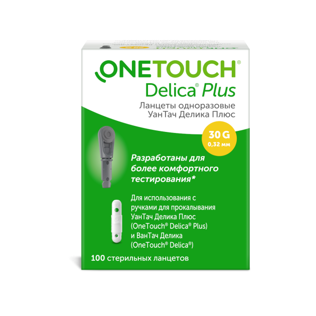 Для использования вместе с ручкой для прокалывания OneTouch® Delica® Plus. Предназначены для безопасного и простого получения капли капиллярной крови из кончика пальца для измерения уровня глюкозы в крови с помощью глюкометра.