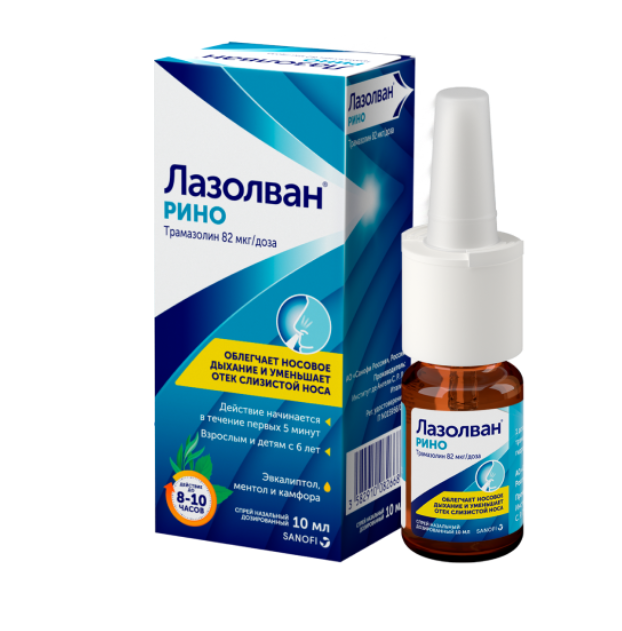 Активное вещество препарата Лазолван® Рино — трамазолина гидрохлорид, альфа-2-адреномиметик, вызывает сужение сосудов. При нанесении на слизистые оболочки носа вследствие сосудосуживающего действия препарат уменьшает отечность. В результате, проходимость носовых ходов быстро восстанавливается, носовое дыхание надолго облегчается.
