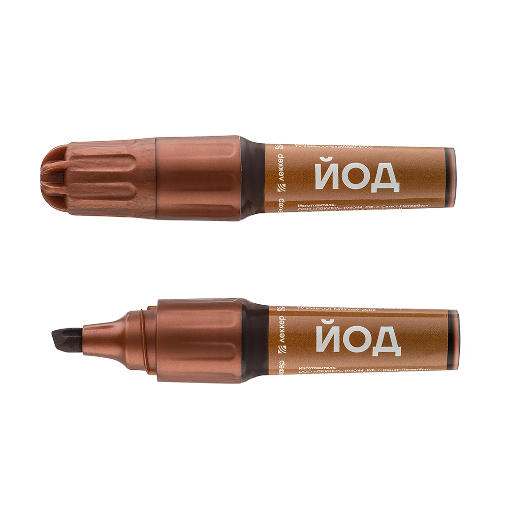 ЛЕККЕР РАСТВОР ЙОДА 5% СПИРТОВОЙ - представляет собой готовый к применению кожный антисептик в виде бесцветной прозрачной жидкости красно-бурого цвета с характерных запахом. ;