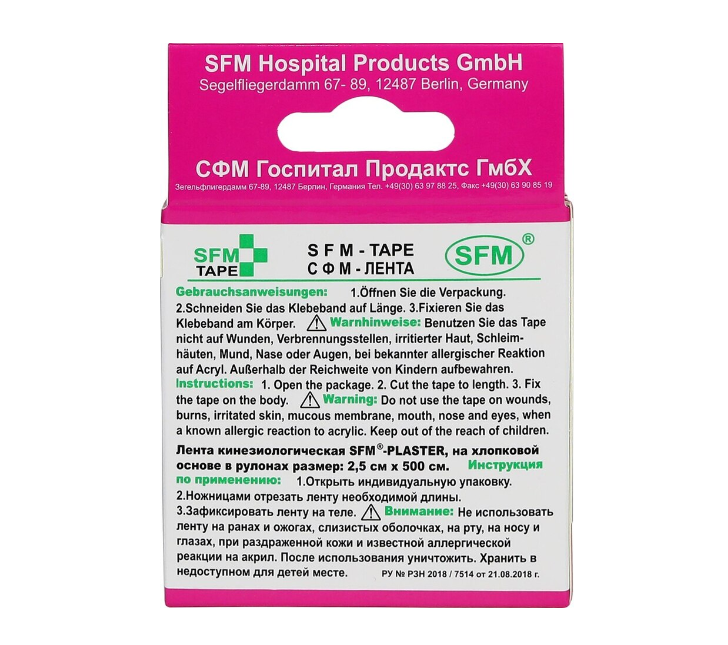 Кинезио пластырь помогает облегчить мышечную боль, борется с мышечной слабостью, фиксирует нестабильные суставы, выпрямляет осанку, является поддержкой при переломах, регулирует кровоток и лимфоток, применяется при артрите и отеках. Лейкопластырь кинезио тейп SFM 2,5 см Х 500 см можно носить до 5 дней, он быстро сохнет, не растягивается, не отклеивается и не ощущается при использовании.