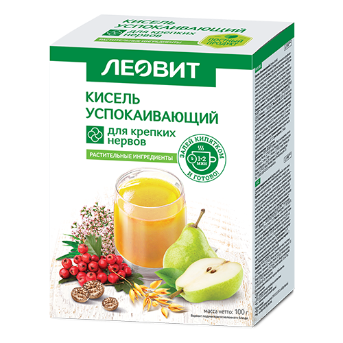 Кисель «Успокаивающий» приготовлен с добавлением овсяной муки, из яблок, груш и пряностей, а также содержит экстракты вышеуказанных трав. Благодаря такому составу кисель получился очень вкусным. Кроме того, его компоненты оказывают мягкое обволакивающее действие на слизистую оболочку желудка. Кисель предназначен для применения при повышенной возбудимости и раздражительности.