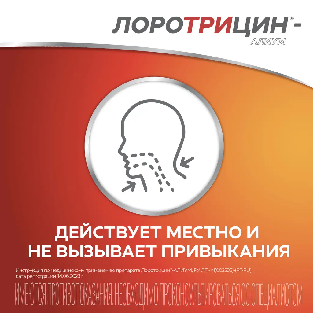 В рекомендованных дозах случаев передозировки не описано. Случайный приём больших доз препарата ЛОРОТРИЦИН®-АЛИУМ может вызвать нарушения со стороны пищеварительной системы (тошнота, рвота, диарея), метгемоглобинемию (затруднение дыхания и голубоватый цвет кожи). В таком случае необходимо промыть желудок, принять активированный уголь и обратиться к врачу.