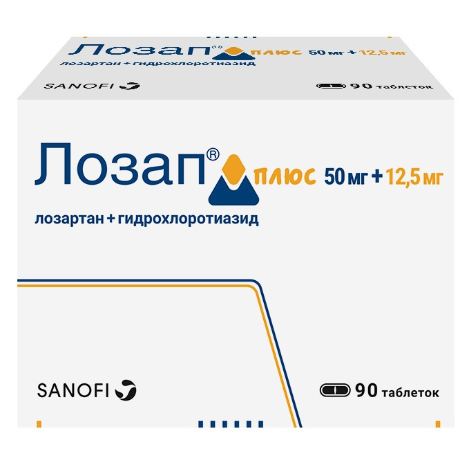 Лозап плюс таблетки покрытые плёночной оболочкой 50мг+12,5мг №90