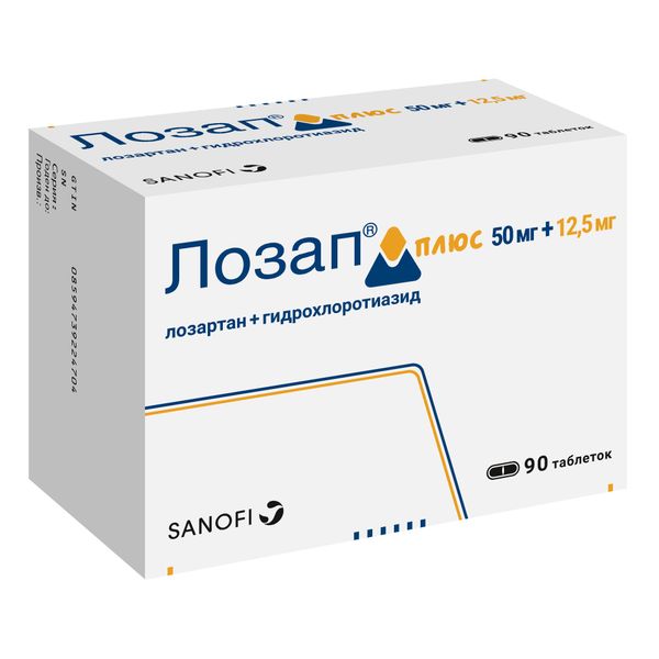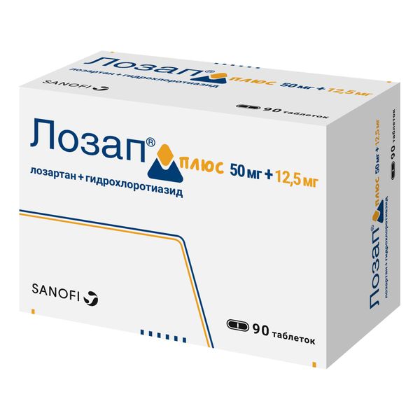 Лозап плюс таблетки покрытые плёночной оболочкой 50мг+12,5мг №90