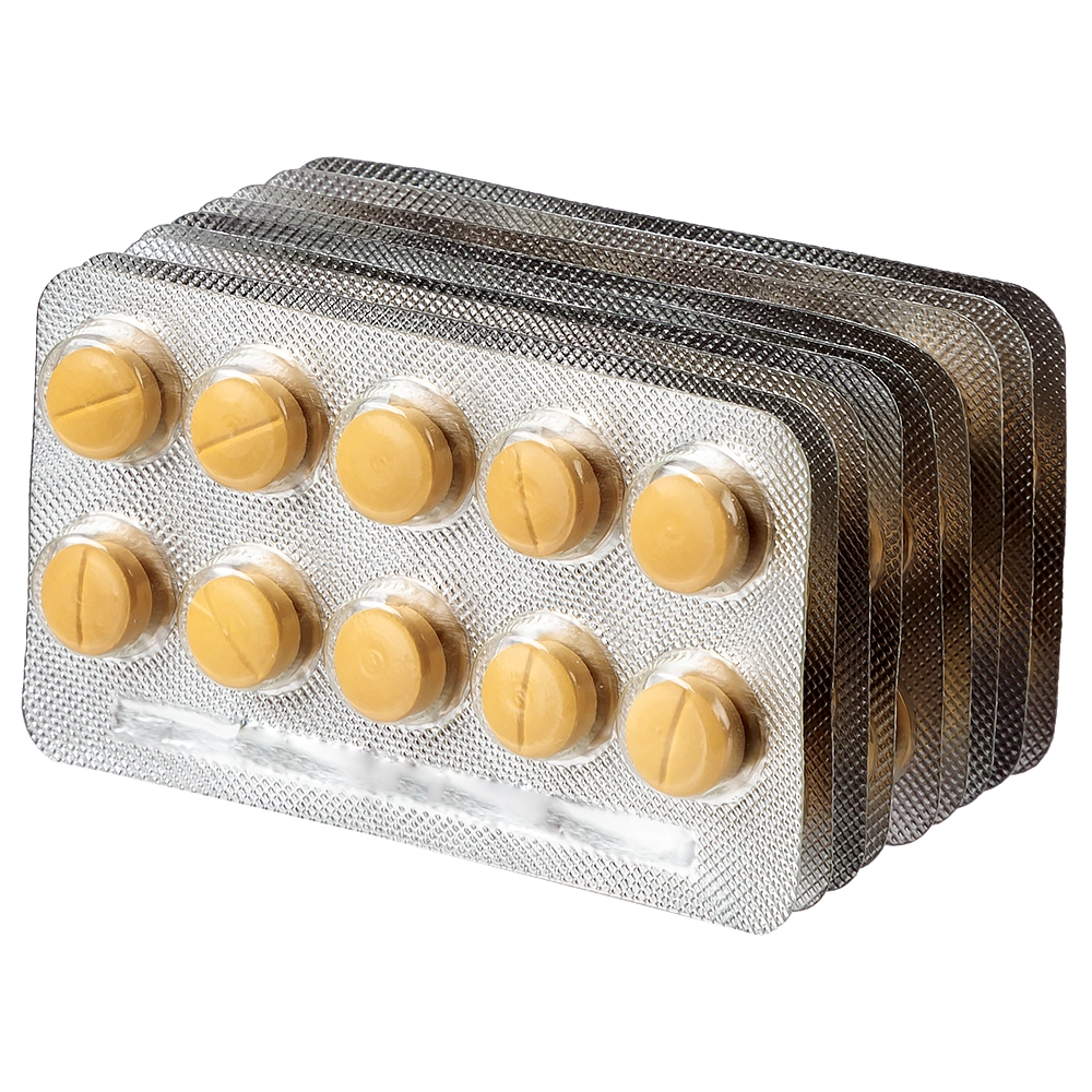 По 10 таблеток в контурную ячейковую упаковку. 1, 2, 3, 4, 5 контурные ячейковые упаковки вместе с инструкцией по применению помещены в пачку из картона.