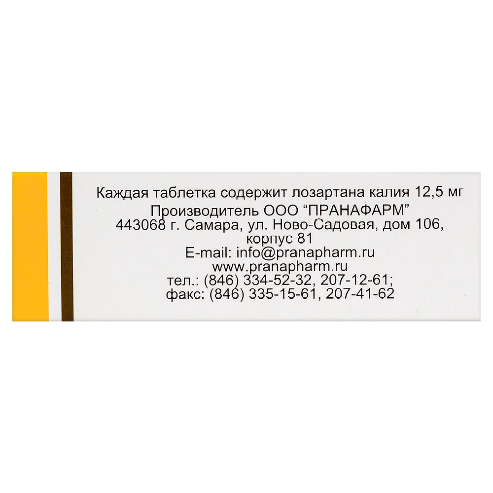 | Лозартан калия | 12,5 мг | 25 мг | 50 мг | 100 мг |