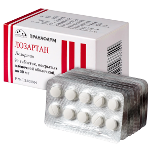 Лозартан таблетки покрытые пленочной оболочкой 50мг №90