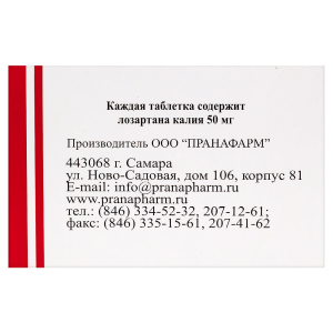 | Лозартан калия | 12,5 мг | 25 мг | 50 мг | 100 мг |