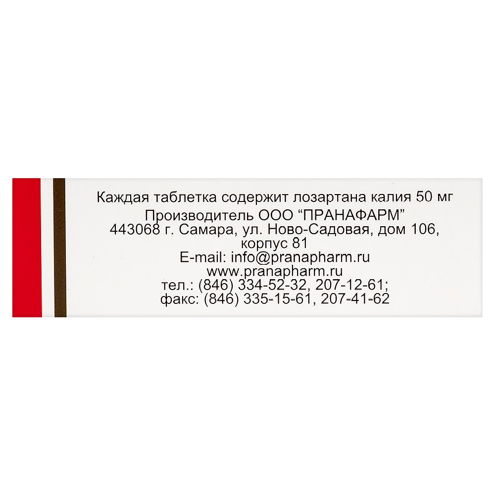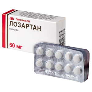 Действующее вещество: лозартан калия — 50,000 мг.