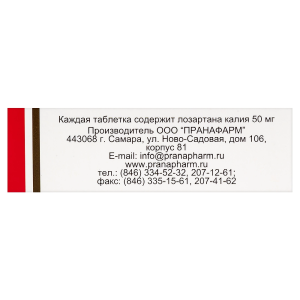 | Лозартан калия | 12,5 мг | 25 мг | 50 мг | 100 мг |