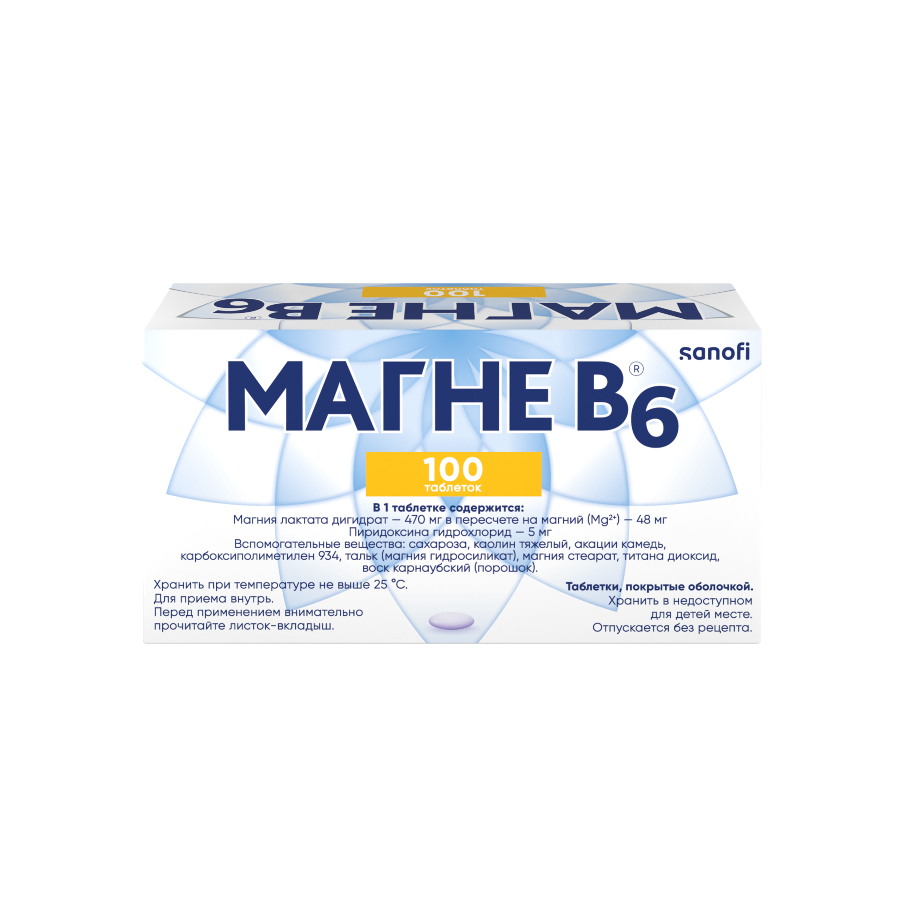Магне B6 таблетки покрытые плёночной оболочкой 48мг+5мг №100