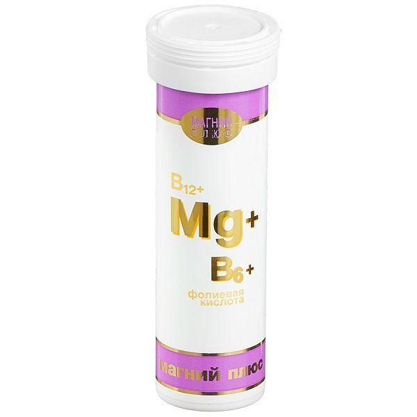 Активные вещества: Магния лактат 200,0 мг, Магния карбонат, Пиридоксина гидрохлорид (Витамин B6) 2,0 мг, Фолиевая кислота (Витамин B9) 0,2 мг, Цианокобаламин 0,1 % (Витамин B12 0,1 %) 1,000 мг в пересчёте на витамин B12 0,001 мг.
