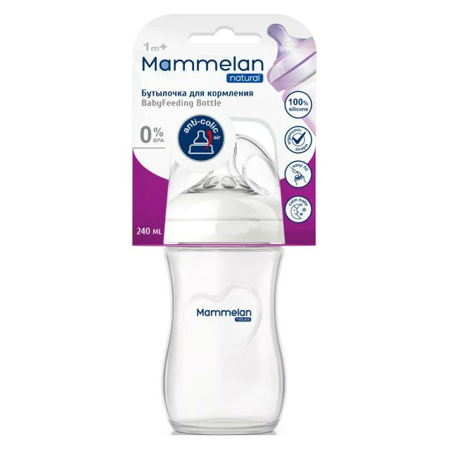 Mammelan бутылочка для кормления противоколиковая с широким горлом 1+ 240мл