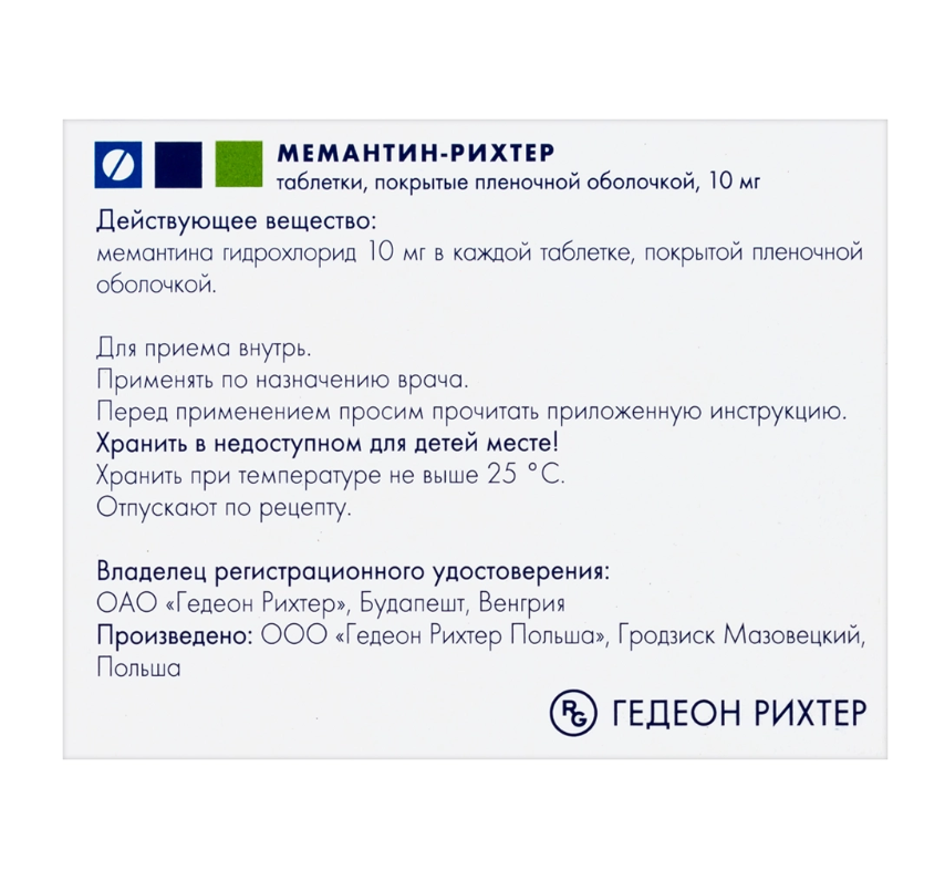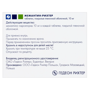 Мемантин-Рихтер таблетки покрытые плёночной оболочкой 10мг №30