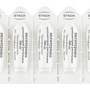 Действующее вещество - диоксометилтетрагидропиримидин (метилурацил) – 500 мг
