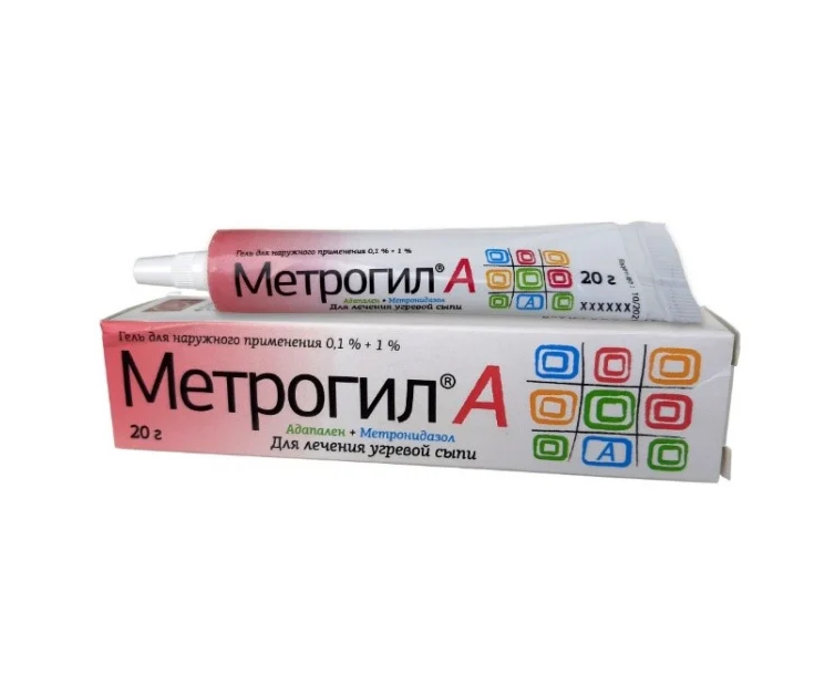 Действующие вещества: Адапален — 1,0 мг, метронидазол — 10,0 мг