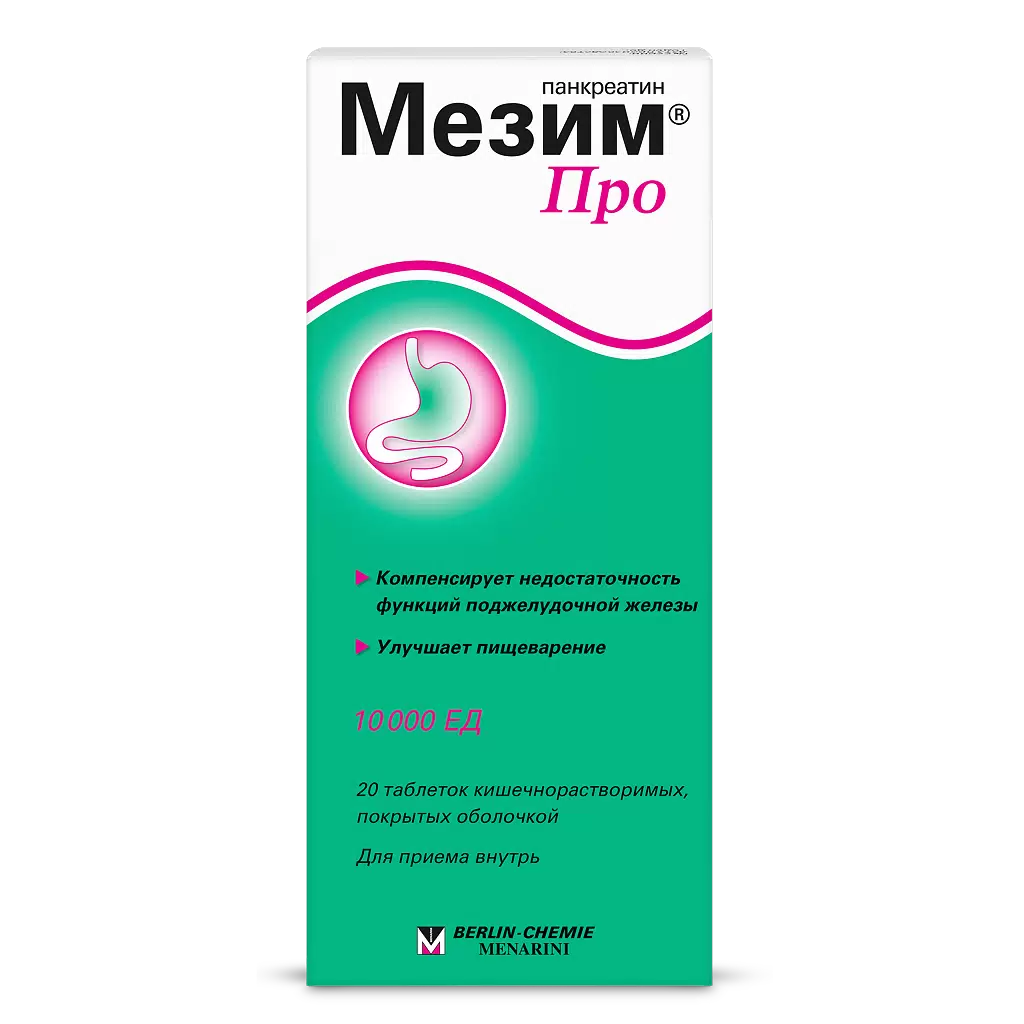 Мезим Про таблетки покрытые кишечнорастворимой оболочкой 10000ЕД №20
