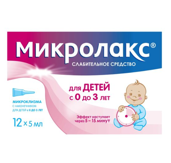 МИКРОЛАКС® — комбинированный препарат, оказывающий слабительное действие. Эффект наступает через 5–15 мин. В состав препарата входят натрия цитрат (пептизатор, который вытесняет связанную воду, содержащуюся в каловых массах), натрия лаурилсульфоацетат (разжижает содержимое кишечника) и сорбит (усиливает слабительное действие путём стимуляции поступления воды в кишечник). Увеличение количества воды за счёт пептизации и разжижения способствует размягчению каловых масс и облегчает опорожнение кишечника.