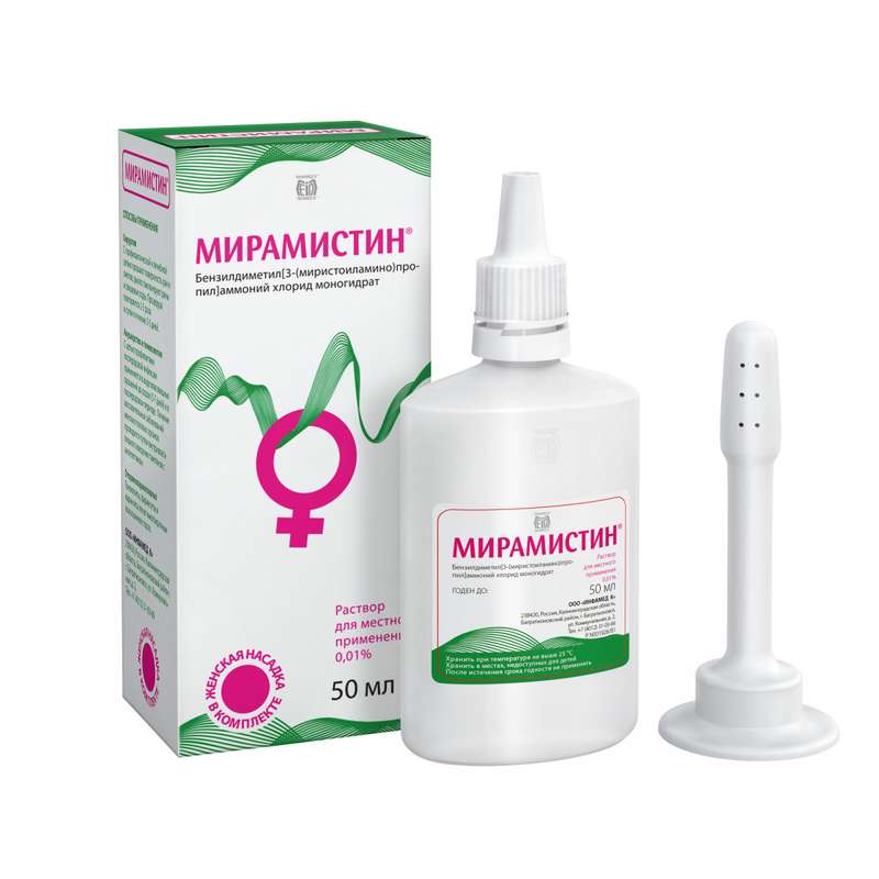 Профилактика и лечение нагноений послеродовых травм, ран промежности и влагалища, послеродовых инфекций: препарат Мирамистин® применяется в виде влагалищных орошений до родов (5-7 дней), в родах (после каждого влагалищного исследования). В послеродовом периоде Мирамистин® вводится с помощью тампонов, смоченных 50 мл препарата, с дальнейшей экспозицией тампона на протяжении 2 ч в течение 5 дней. При родоразрешении женщин путем кесарева сечения непосредственно перед операцией обрабатывают влагалище, во время операции – полость матки и разрез на ней, а в послеоперационном периоде вводят тампоны, смоченные препаратом Мирамистин®, во влагалище с экспозицией 2 ч в течение 7 дней. Лечение воспалительных заболеваний проводится курсом в течение 2-х недель путем внутривлагалищного введения тампонов с препаратом Мирамистин®, а также методом лекарственного электрофореза. Комплексное лечение воспалительных заболеваний в гинекологии (вульвовагинит): в виде влагалищных орошений или введения тампона, смоченного препаратом Мирамистин®, с экспозицией 2 ч, в течение 7-14 дней (продолжительность лечения и кратность введения определяются по назначению врача). Для удобства влагалищного орошения рекомендуется использование гинекологической насадки. Содержимое флакона с помощью гинекологической насадки ввести во влагалище и произвести орошение.
