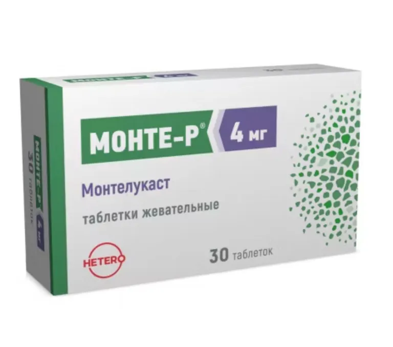 Действующее вещество: монтелукаст натрия — 4,16 мг (в пересчёте на монтелукаст — 4,00 мг)