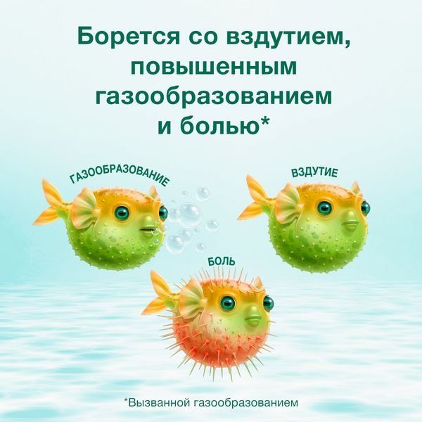 Симптоматическое лечение метеоризма (избыточного газообразования и вздутия живота), связанного с расстройствами со стороны желудочно-кишечного тракта - в том числе, вызванного функциональной диспепсией.