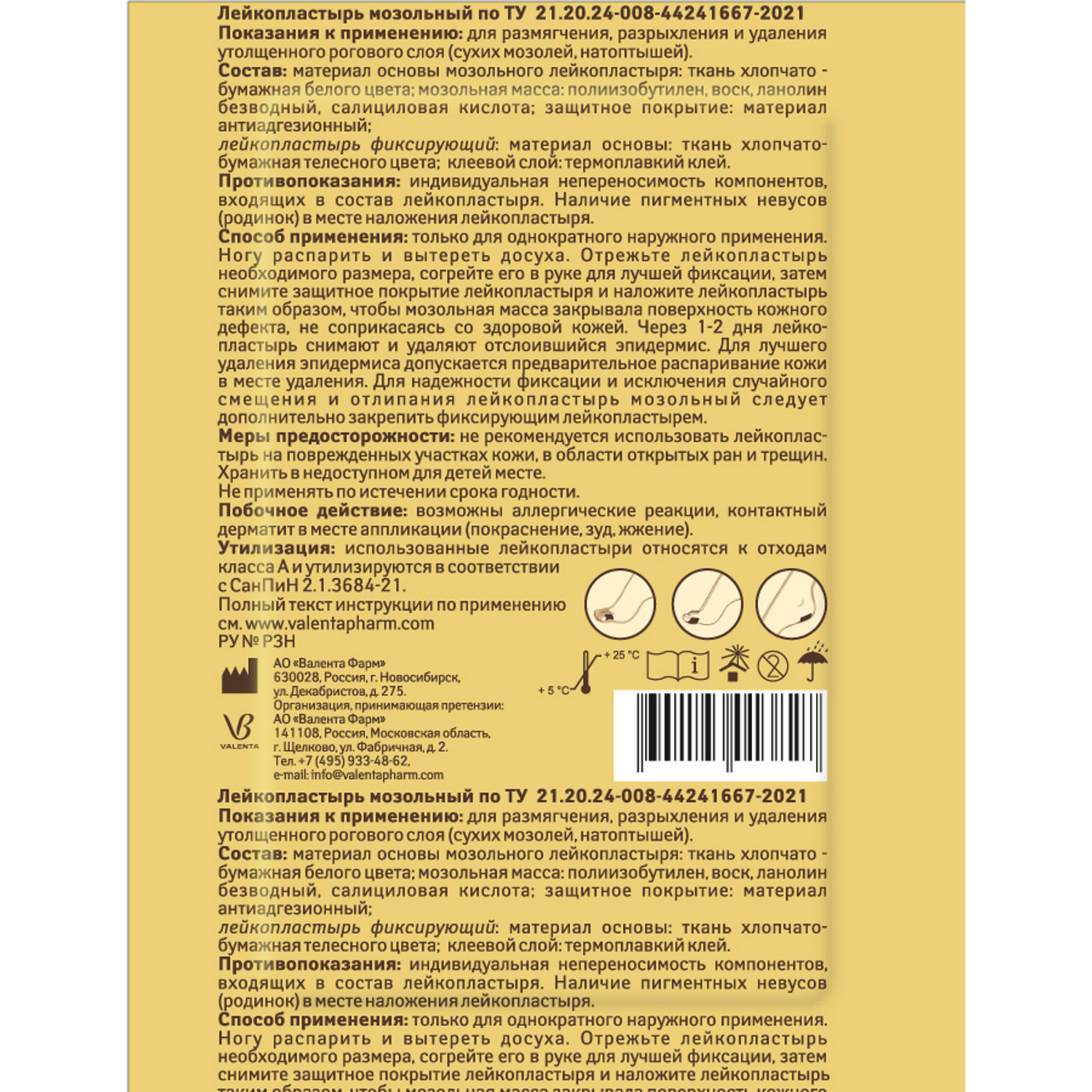 Только для однократного наружного применения. Ногу распарить и вытереть досуха. Снять защитное покрытие лейкопластыря и наложить лейкопластырь таким образом, чтобы мозольная масса (тёмного цвета) закрывала поверхность кожного дефекта, не соприкасаясь со здоровой кожей. Через 1-2 дня лейкопластырь снимают и удаляют отслоившийся эпидермис. Для лучшего удаления эпидермиса допускается предварительное распаривание кожи в месте удаления.