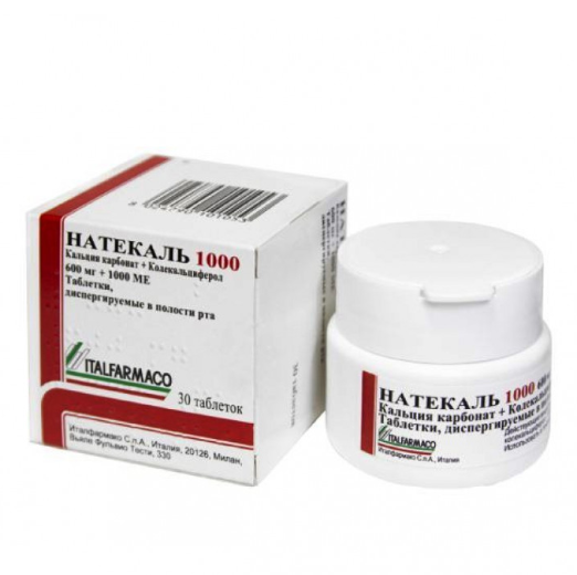 Натекаль 1000 таблетки диспергируемые в полости рта 600мг +1000МЕ №30