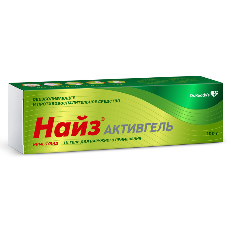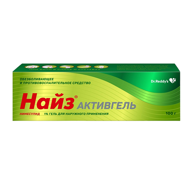 После однократного нанесения на поверхность кожи площадью 28 см2 препарата Найз® Активгель, гель для наружного применения 1%, в дозе 40 мг (по нимесулиду), максимальная концентрация действующего вещества в плазме (Сmах) - 14,83 нг/мл, время достижения максимальной концентрации (Тсmах) -11ч и площадь под кривой «плазменная концентрация - время» (AUC) - 195,46 нг*ч/мл, значимо отличались от аналогичных фармакокинетических показателей (5,35 нг/мл, 16,34 ч и 71.07 нг*ч/мл. соответственно) препарата Найз®, гель для наружного применения 1%. что свидетельствует о более быстром всасывании и лучшей относительной биодоступности нимесулида при применении препарата Найз® Активгель.