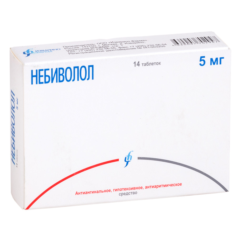 Активное вещество: небиволола гидрохлорид - 5,45 мг (в пересчете на небиволол - 5,00 мг).