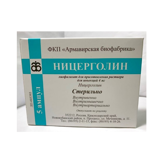 Ницерголин лиофилизат для приготовления раствора для инъекций 4мг ампулы №5