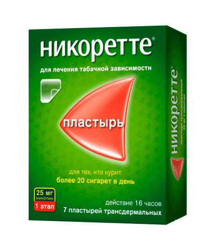 Никоретте® пластырь 25 мг/16 часов Первые 8 недель.