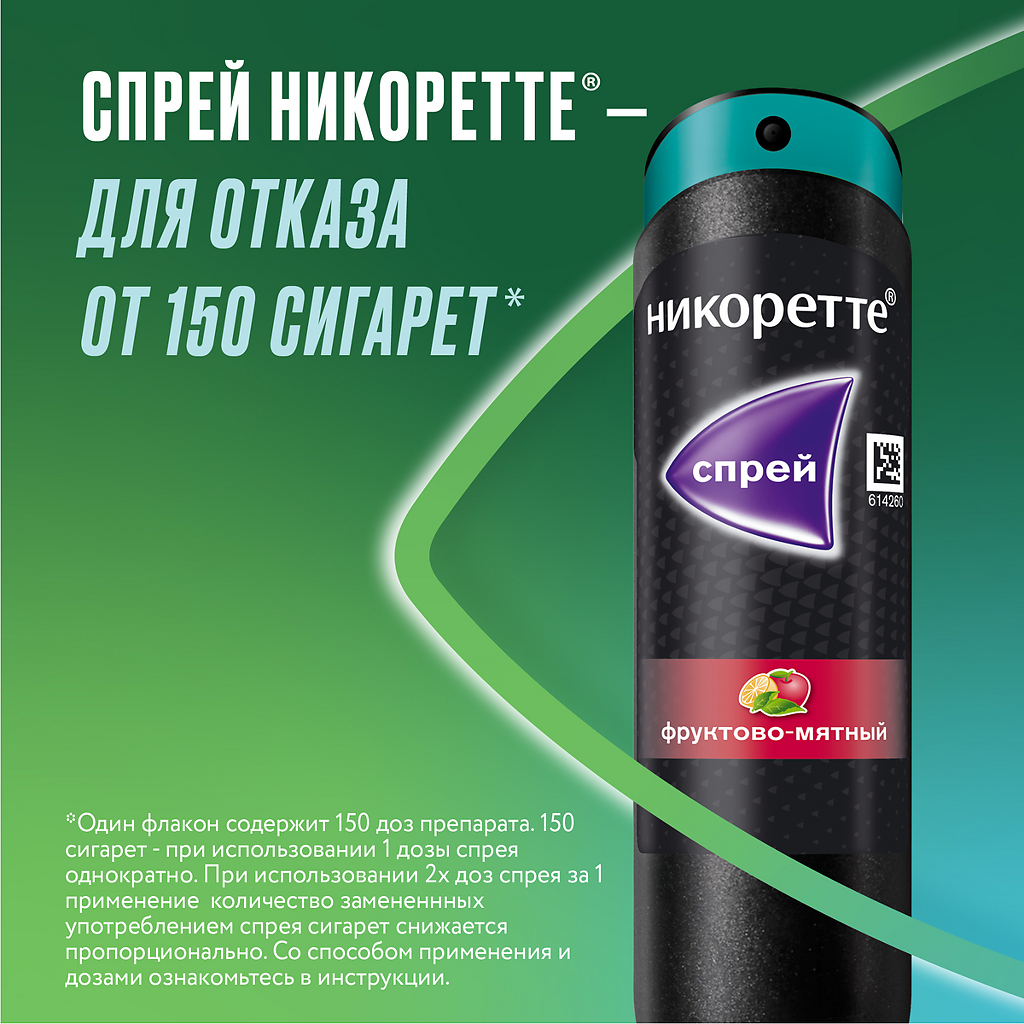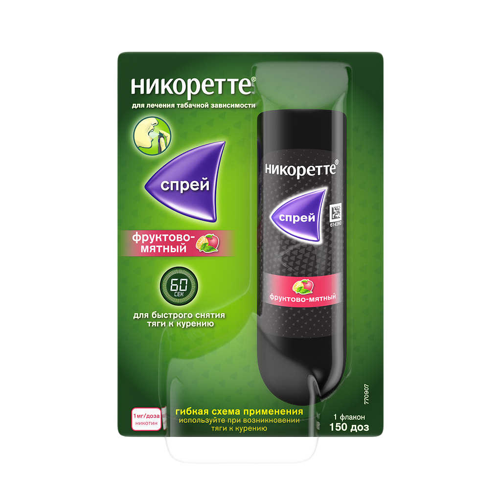 Никоретте спрей для слизистой оболочки полости рта дозированный фруктово-мятный 1мг/доза флакон 13,2мл /150доз/ №1