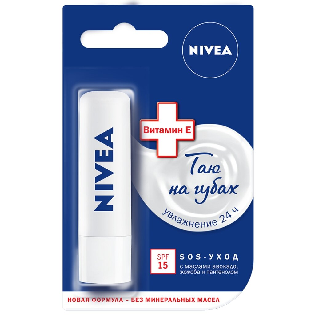 NIVEA БАЛЬЗАМ ДЛЯ ГУБ SOS-УХОД - SPF 15 Хотите успокоить кожу Ваших губ и обеспечить им длительную защиту? Высокоэффективная формула бальзама для губ «Интенсивная защита» с технологией Hydra IQ и Витамином Е предотвращает появление сухости губ и обеспечивает длительную защиту.