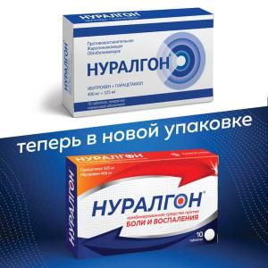 Нуралгон таблетки покрытые плёночной оболочкой 400мг+325мг №10