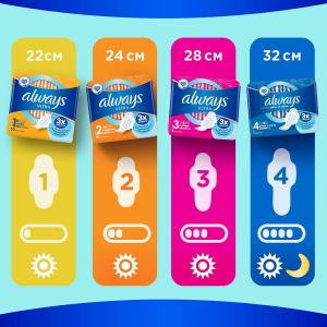 Обеспечьте себе наилучшую защиту с помощью Always Мой размер — специальной системы определения размера, которая помогает правильно подобрать прокладку Always на основании количества выделений и размера трусиков. Оставайтесь под надежной защитой, как бы активно вы ни двигались.