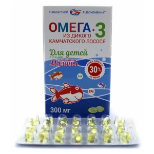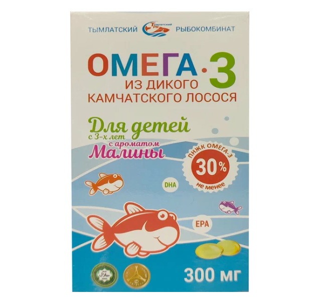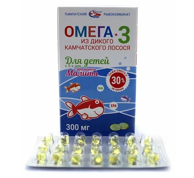 Омега-3 из дикого камчатского лосося для детей с 3-х лет с ароматом малины капсулы 300мг №84