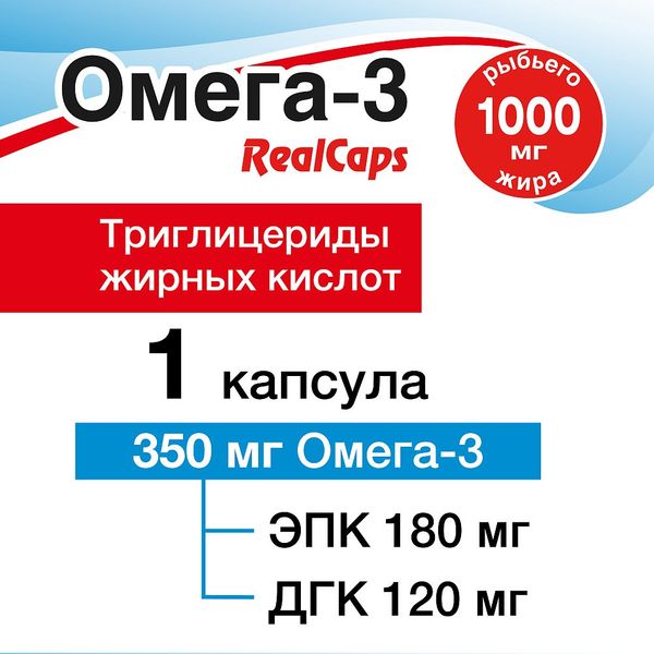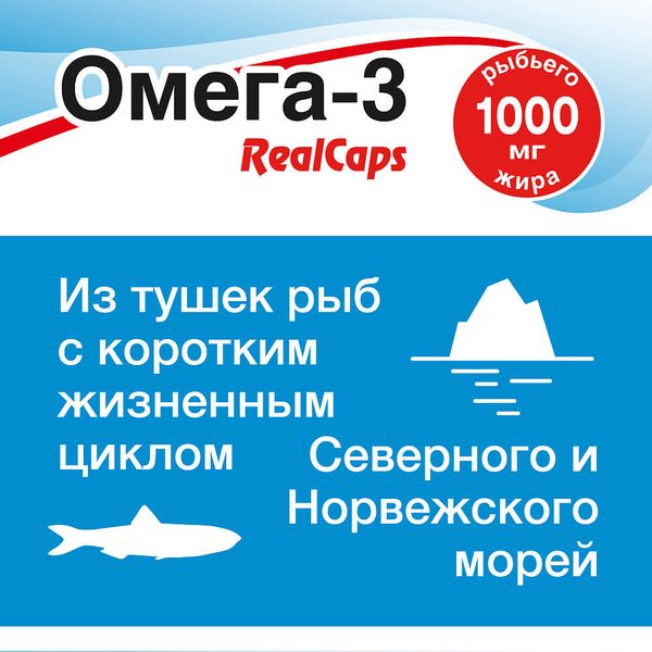 ПНЖК Омега-3 RealCaps – натуральный источник Омега-3 жирных кислот, который поможет естественным образом восполнить их недостаток в Вашем питании.