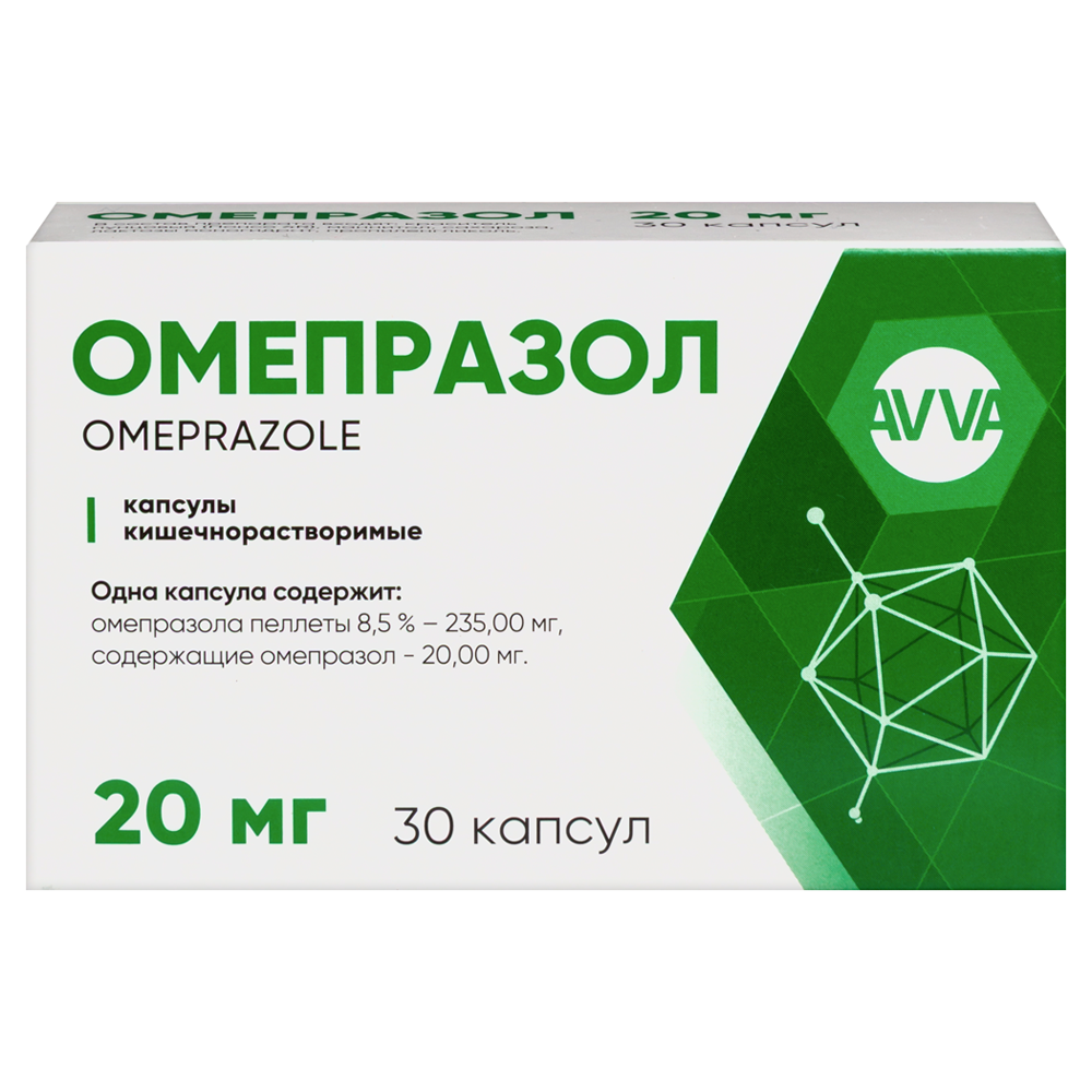 Одна капсула содержит: омепразола пеллет — 235 ;мг, содержащих ;омепразола ;— 20 ;мг