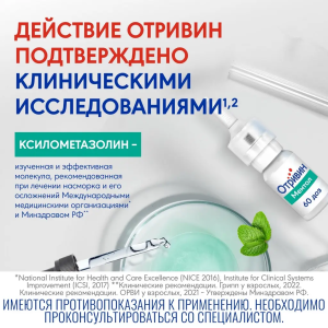 Ксилометазолин относится к группе местных сосудосуживающих средств (деконгестантов) с а- адреномиметическим действием, вызывает сужение кровеносных сосудов слизистой носа, устраняя отёк и гиперемию слизистой оболочки носоглотки. Облегчает носовое дыхание при ринитах. Отривин® хорошо переносится пациентами с чувствительной слизистой оболочкой, его воздействие не препятствует отделению слизи. Отривин® имеет сбалансированное значение pH, характерное для полости носа. Содержащиеся в препарате ментол и эвкалиптол оказывают охлаждающее действие на слизистую оболочку носа, дающее ощущение свежести.