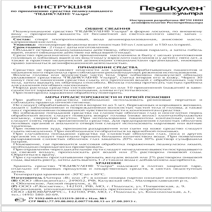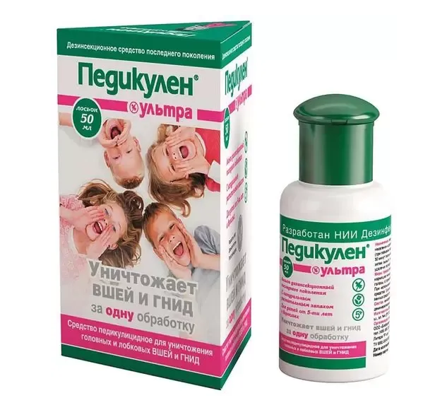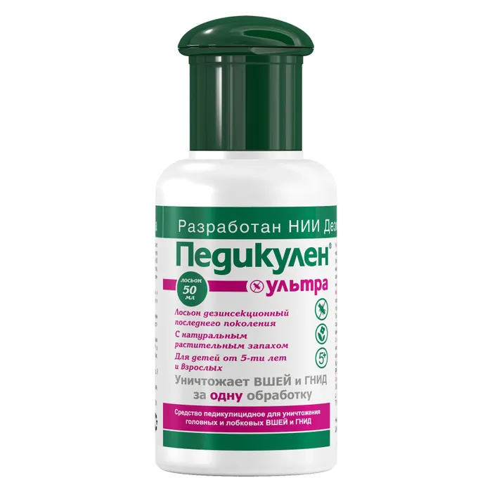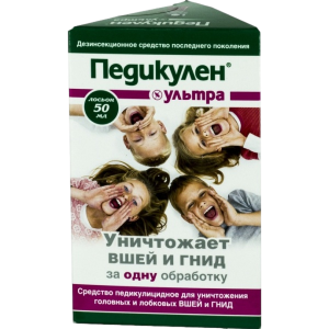 Педикулен ультра – дезинсекционное средство, уничтожает вшей и гнид за одно применение.