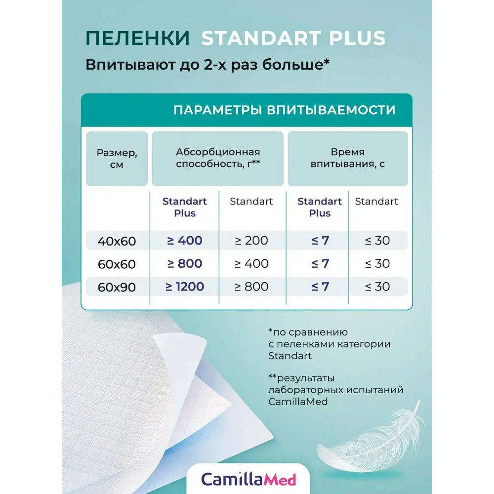 CamillaMed Standart Plus одноразовые впитывающие пеленки 40х60см №10