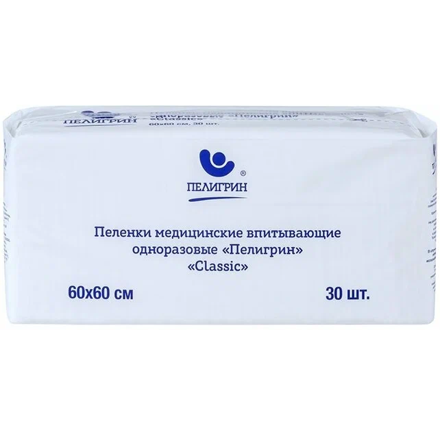 Пелигрин Classic пеленки медицинские впитывающие одноразовые 60х60см №30