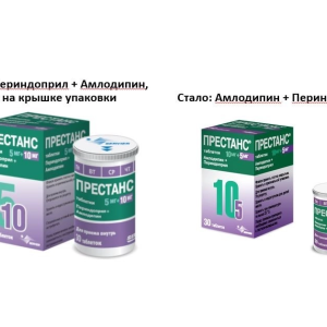 действующих веществ амлодипина безилата 13,87 мг. соответствует 10 мг амлодипина и периндоприла аргинина 5 мг, соответствует 3,395 мг периндоприла.