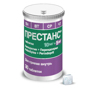 Величина абсорбции периндоприла и амлодипина при применении лекарственного препарата Престанс® существенно не отличается от таковой при применении монопрепаратов.