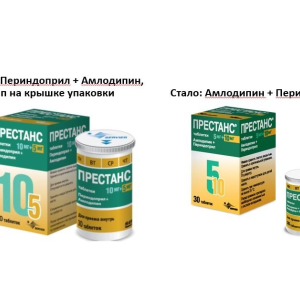 действующих веществ амлодипина безилата 6,935 мг, соответствует 5 мг амлодипина и периндоприла аргинина 10 мг, соответствует 6,79 мг периндоприла.
